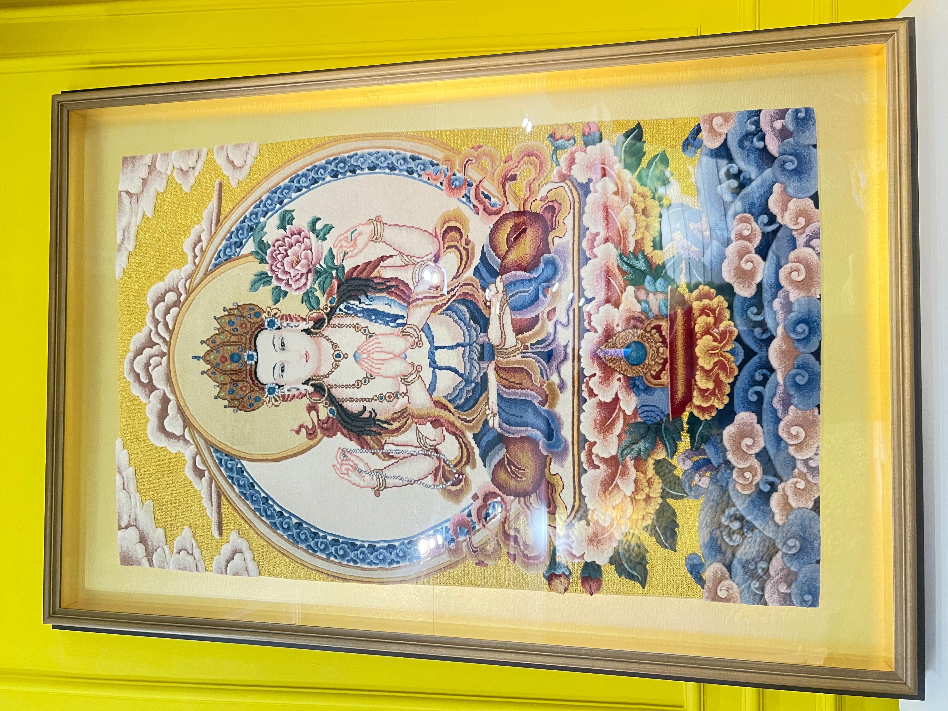 真丝挂毯也是北京金宝华盛地毯有限公司的主营产品之一。真丝材质赋予了挂毯柔软光滑的触感和绚丽多彩的色泽。真丝挂毯可以作为墙面装饰,为空间增添艺术氛围和文化气息。无论是在家庭客厅、卧室,还是在商业场所的展厅、会议室等,真丝挂毯都能成为一道亮丽的风景线。