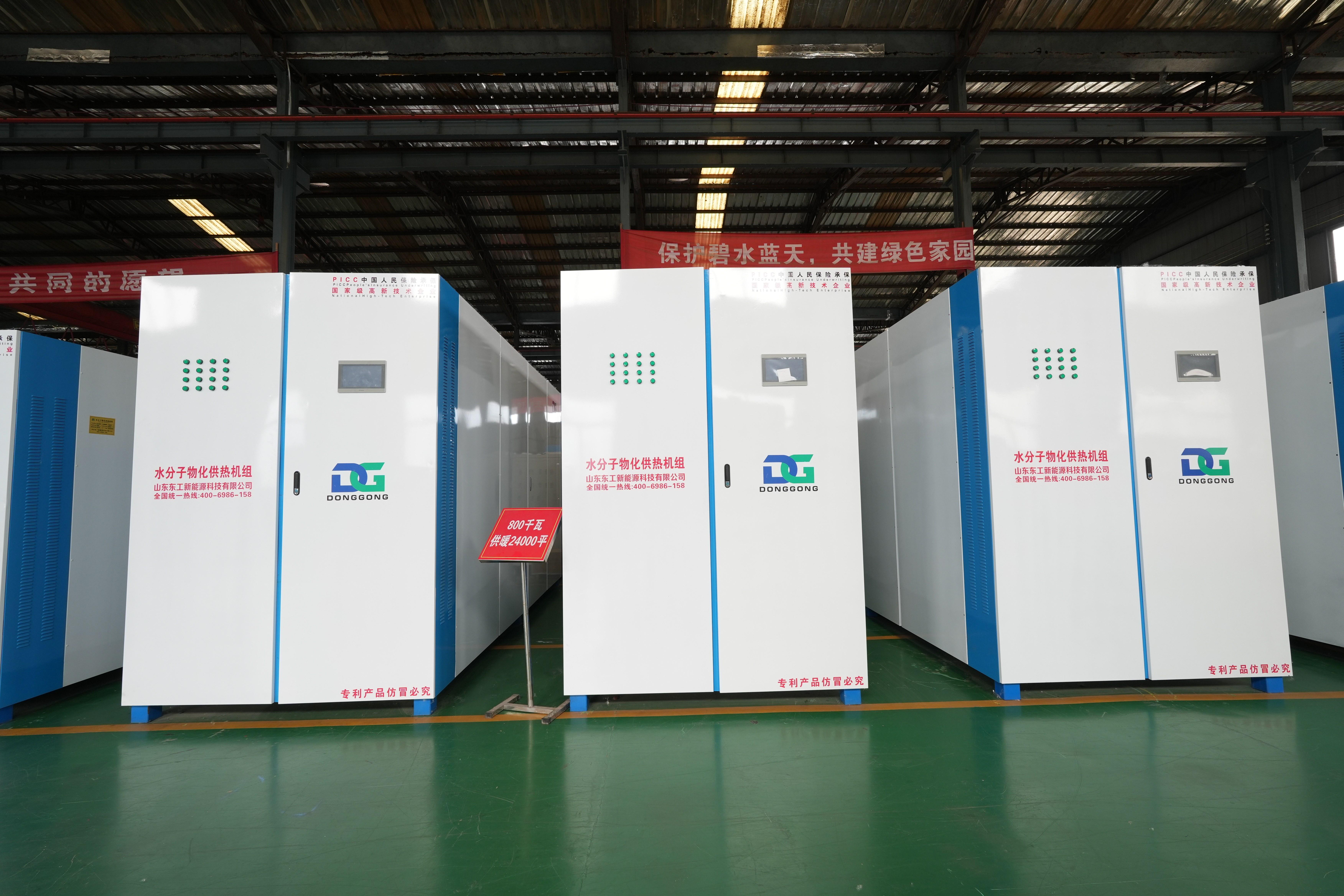2020 年,山东东工新能源科技有限公司以“低碳、节能、环保”为经营使命,潜心研发水分子物化供热机组。该产品具有很高的科技含量,赋予采暖设备以全新的特点和内涵,在国内处于技术较为先进的水平。它突破了 1kw 供暖 10 平米的常规,实现了 1kw 供暖 30 平米的突破,即将给中国电采暖领域带来新的变革。