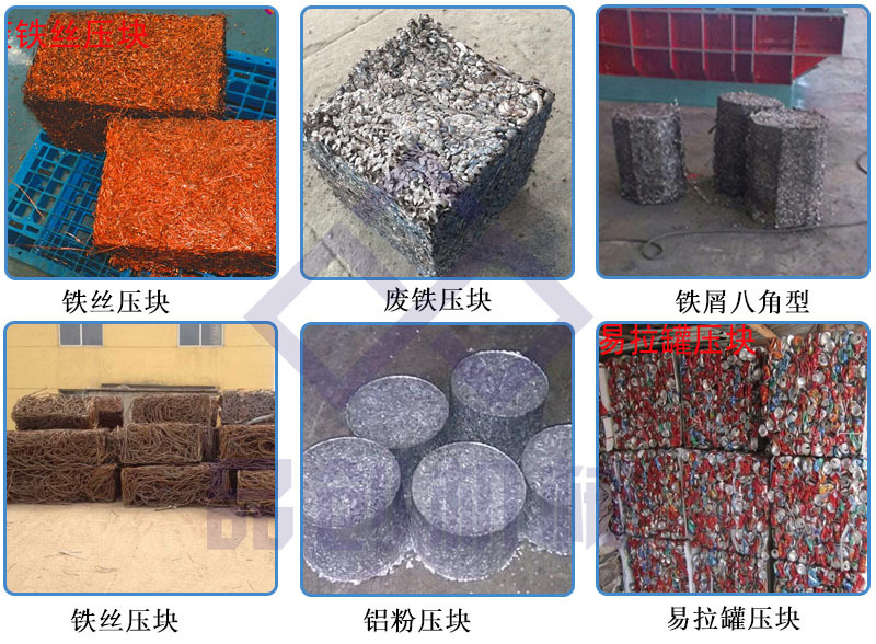 废旧油漆桶金属压块机可将各种金属边角料、钢刨花屑、废钢、废铁、废铜、废铝、铝刨花屑、解体汽车壳、废油桶等金属原料挤压成长方体、圆柱体等各种形状的合格炉料。便于储藏、运输及回炉再利用。